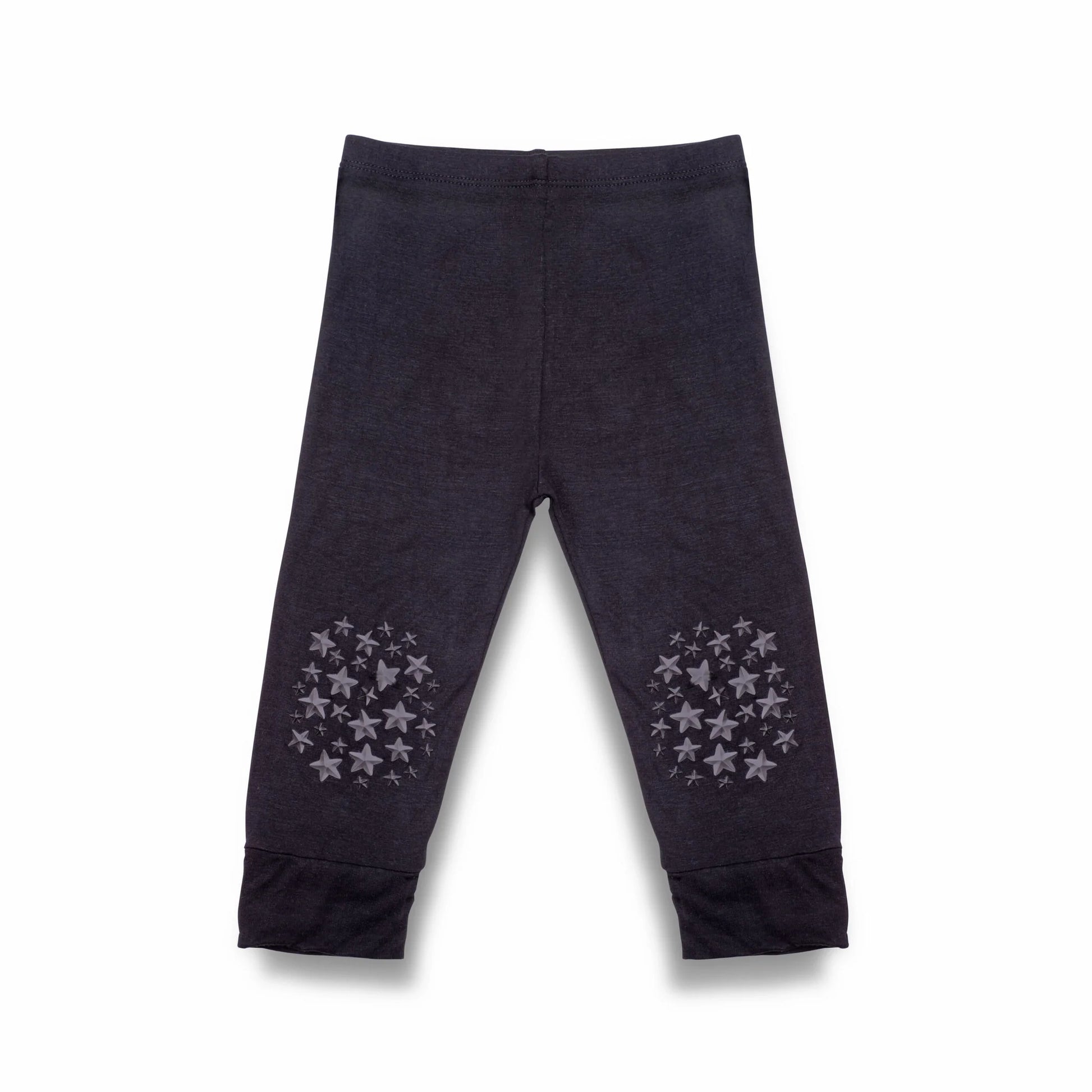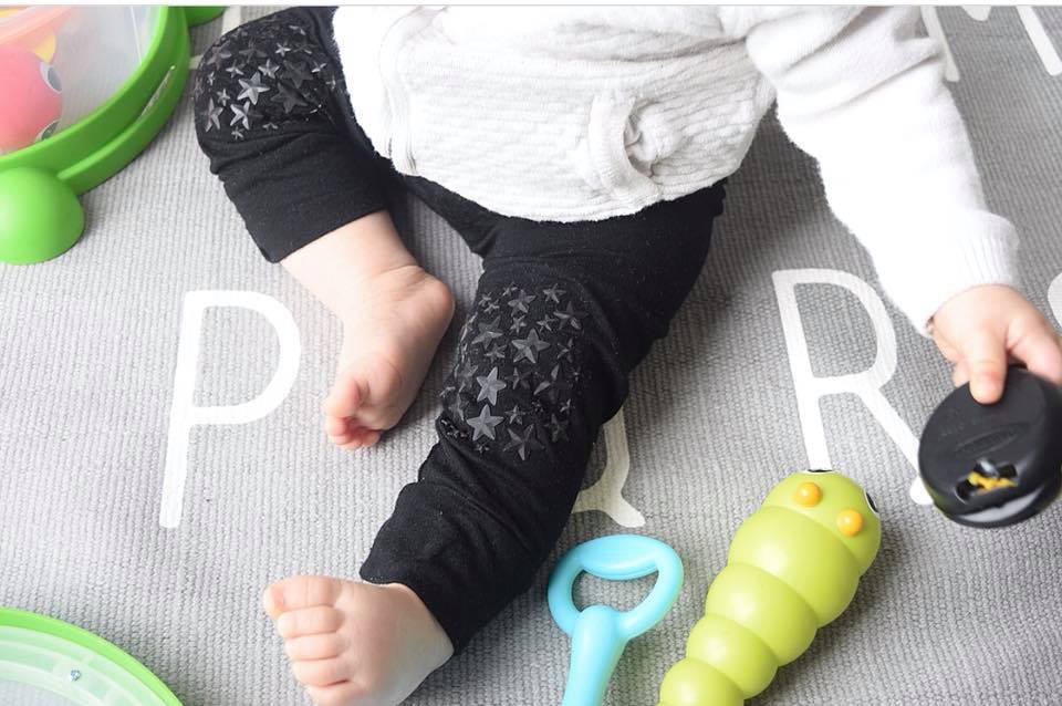 These popular black Grip N' Go leggings pants made by Go Little One Go, feature grippy star traction on the knees to support your little one as they begin to crawl and maneuver. No more slipping, sliding, or face-plants on slippery flooring like hardwood or tile.