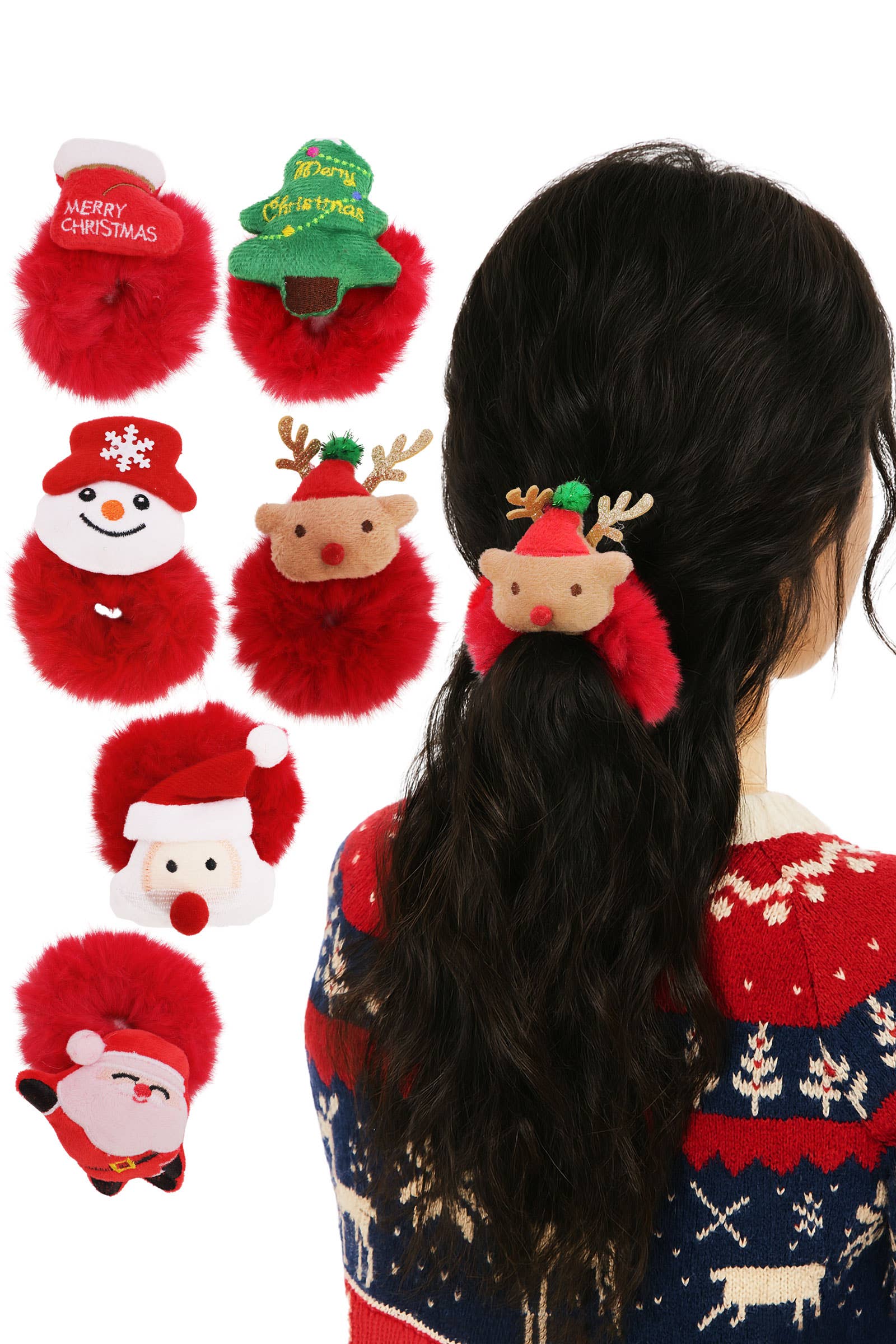 Christmas Plushie Charm Fuzzy Faux Fur Scrunchies