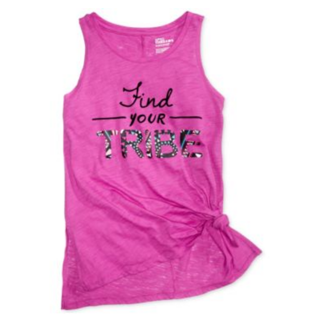 Epic Threads Girls' (7-16) Graphic-Print Tank-top “Find your tribe”. Tagless for extra comfort. Strong seams for strength and durability Comfortable Fit. It doesn't just look fantastic; it also feels great. A go to piece she will want to wear again and again. Cotton/Polyester blend, it’s a perfect summer top. Pair it with a skirt and sandals for a special day or shorts and sneakers for a casual vibe.