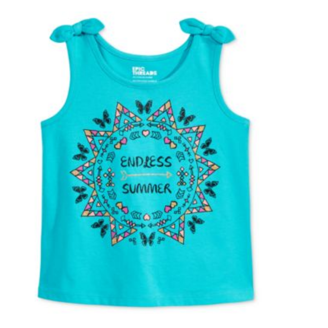 Epic Threads Toddler & Little Girls Graphic-Print Tank Top . Tagless for extra comfort. Strong seams for strength and durability Comfortable Fit. It doesn't just look fantastic; it also feels great. A go to piece she will want to wear again and again. Cotton/Polyester blend, it’s a perfect summer top. Pair it with a skirt and sandals for a special day or shorts and sneakers for a casual vibe.