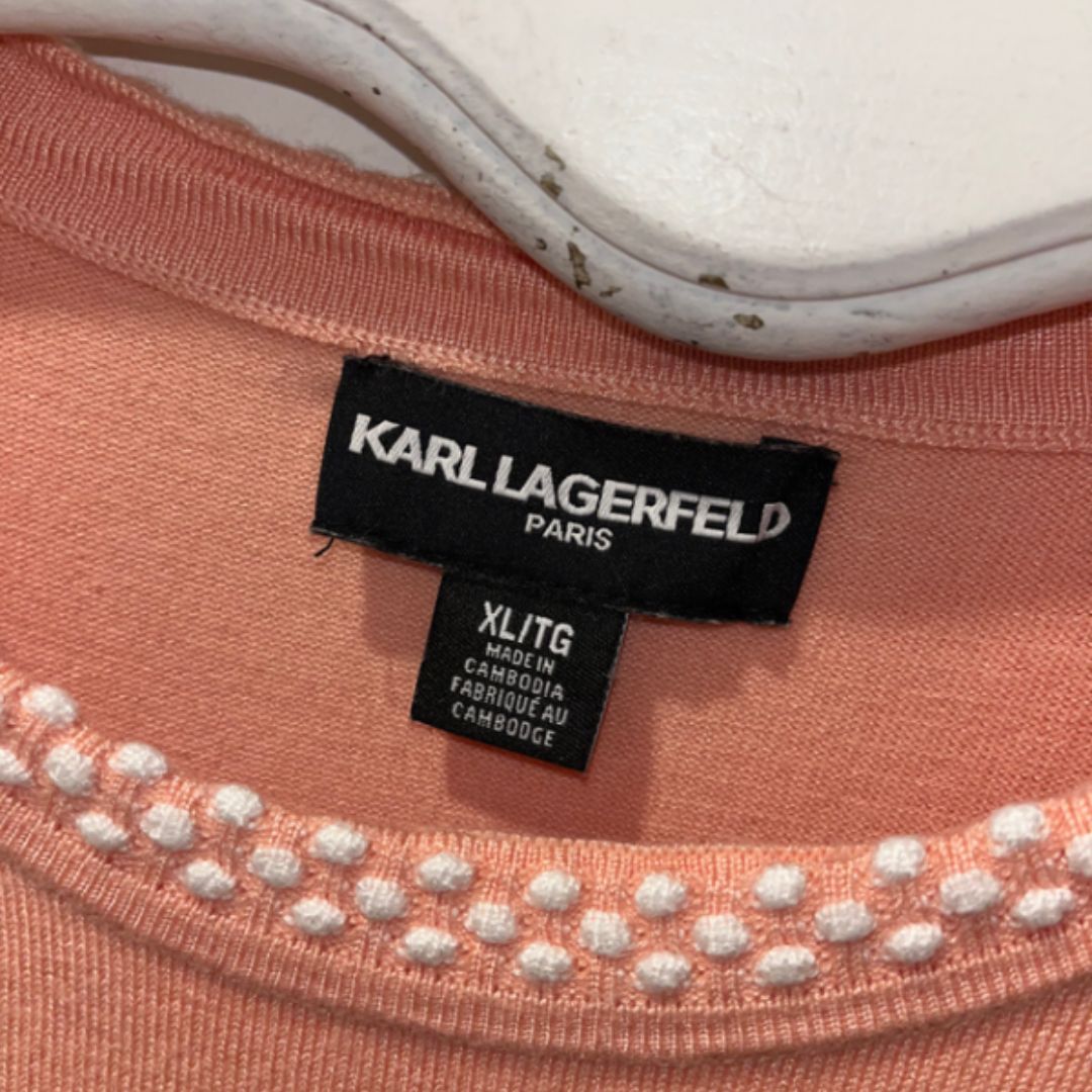 Karl Lagerfeld Paris pink/coral knit short sleeve sweater.
