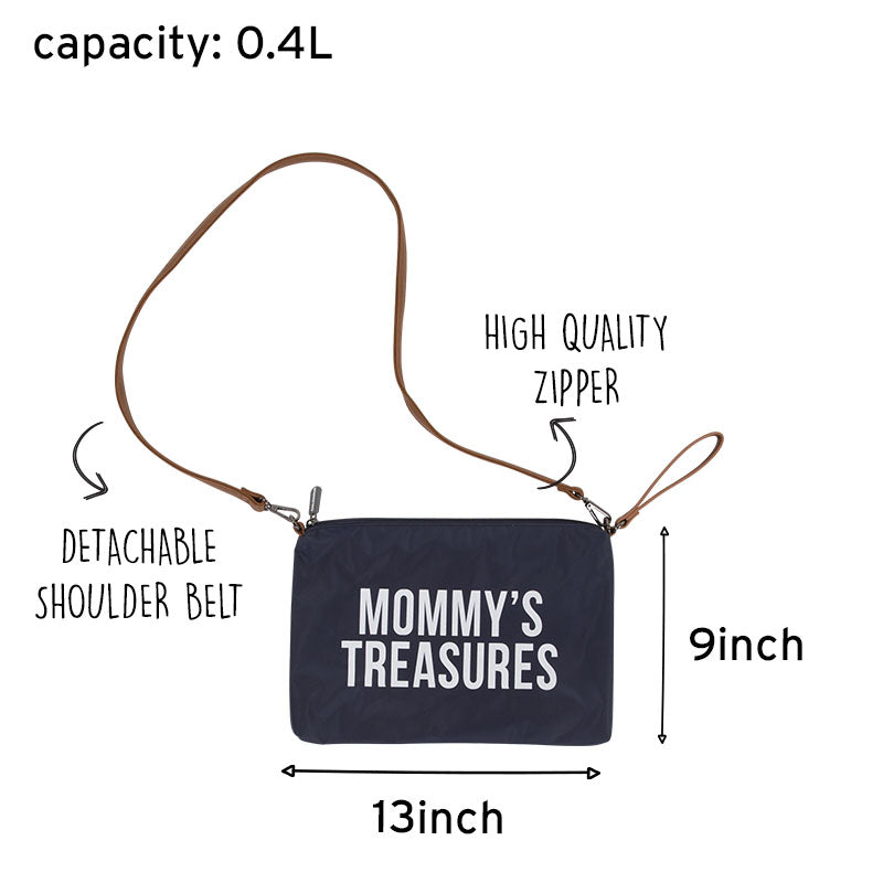 The Childhome Mommy Clutch is a great addition to our ORIGINAL Mommy Bag Collection, allowing a safe and secure place for all of Mommy's treasures. Made from the same great fabric as the ORIGINAL Mommy Bag, the chic clutch allows for an easy alternative to the full-blown Mommy Bag when going for a quick trip. The adorable and modern font declaring "Mommy's Treasures" on the front is a cute way to show off that you are a mom and a lady at the same time.