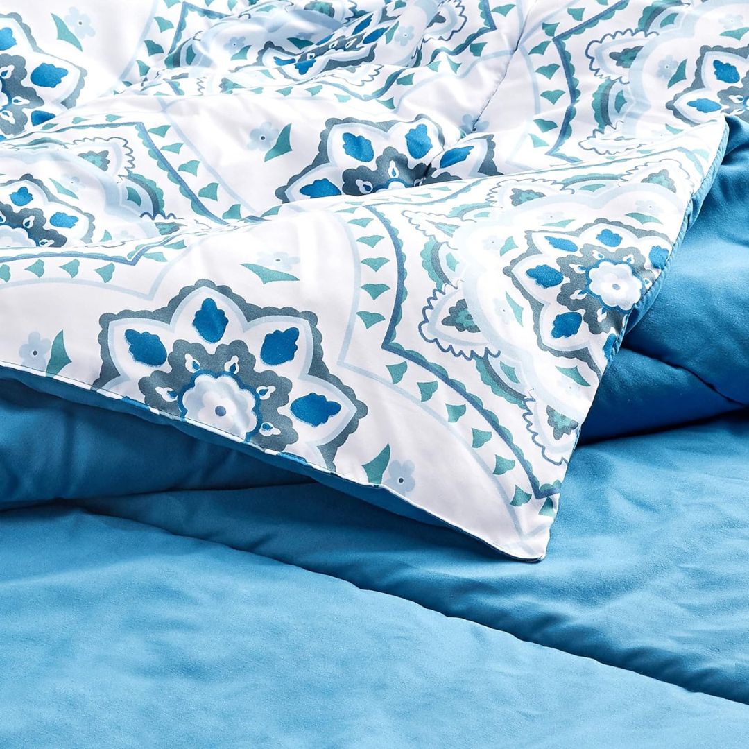 Queen Size Comforter Set. Colour – Light Blue Medallion.
