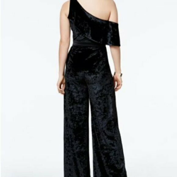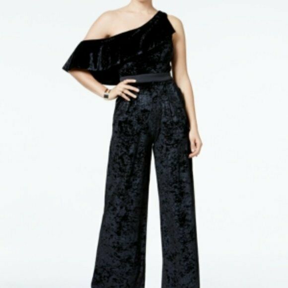 XOXO Juniors' Velvet One Shoulder Ruffle Jumpsuit, MSRP $100